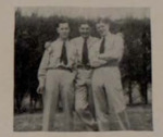 Photograph of RAF cadet Horace Bowley-Booth with fellow Course 23 cadets, George Callis and Ivor Cross at Riddle Field. Horace Bowley-Booth was killed in a plane crash on May 4, 1945, while training to be a pilot at 5BFTS. He is buried in the Commonwealth War Graves Commission British Plot at Oak Ridge Cemetery, Arcadia. Course 23 Listening Out Fly Paper June 15, 1945.