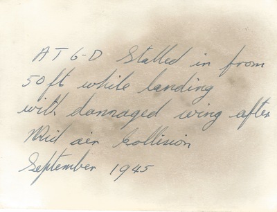 Watters Jim Course 25 Reverse of image 1 with detail of AT-6 crash Sept 1945