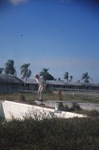The swimming pool at Riddle Field taken during a 5BFTS reunion in Florida, November 1973. Dr Ian Blue is seen pretending to dive into the pool from the diving board.