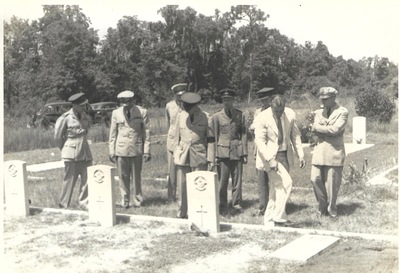 British Plot, Oak Ridge Cemetery, Arcadia, FL – looking west. Funeral of RAF Cadet, LAC Michael J Hinds, who was killed in a flying accident while training to be a pilot at 5BFTS, Riddle Field, Clewiston. The accident was during the night of July12 /13, 1944, and his funeral was held on July 14, 1944.