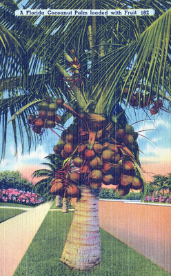 One of a series of postcards bought by A W (Tony) Linfield, 5BFTS cadet on Course 18 (December 1943 - June 1944) while he was in Florida. Tony was a founder member of the 5BFTS Association and became the first Honorary Secretary. He donated his postcard collection to the 5BFTS Archives. In Florida, Coconut was once spelt as Cocoanut . It was changed in the early part of the 20th century to avoid confusion with Cocoa.