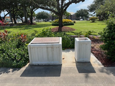 Two plaques in Clewiston Civic Park remembering the RAF cadets who trained at 5BFTS, Riddle Field, Clewiston, between 1941 and 1945. Donated by the 5BFTS Association and dedicated in 1975. They are cared for by the City of Clewiston and were relocated within the park in 2016. Photographs taken May 2025.