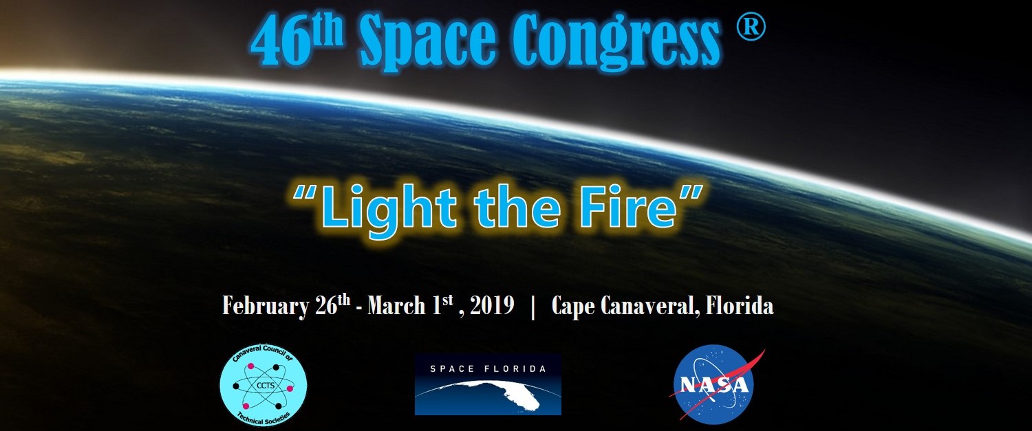 Tuesday's Program Wednesday's Program Thursday's Program Sponors Page Golf Tournament Published Post Conference 46th Space Congress Home Page The planning of the 46th Space Congress ® is underway. Canaveral Council of Technical Societies (CCTS), is once again collaborating with NASA Kennedy Space Center and Space Florida. "Light the Fire" is this year's theme. It was chosen to outline discussions about "lighting the fire" of launch, new technologies, exploration, innovation, imagination, and inspiration! A broad group of panel discussions will be held covering topics that may include: